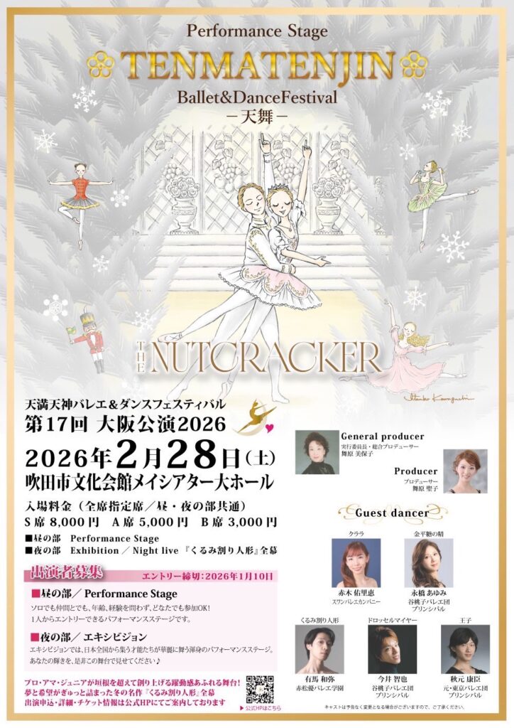 舞台出演のお知らせ 2026 2/02 <天満天神バレエ&ダンスフェスティバル第17回大阪公演> くるみ割り人形全幕 2026/2/28(土) 吹田市文化会館メイシアター大ホール ストゥディオより2名が出演します チケットご希望の方はメールにてお申し込みください 是非ご来場ください 舞台出演 スケジュール更新 2026/3 関連記事 Winter Dance Festival 2026出演のお知らせ 2026.01.21 舞台出演のお知らせ 2024.11.14